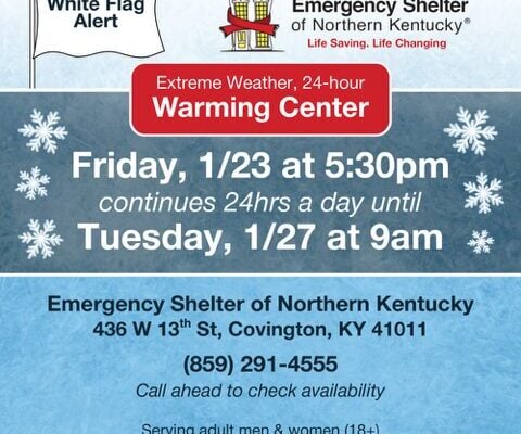 The Emergency Shelter of Northern Kentucky is activating a 24-hour warming center under White Flag procedures, in partnership with Kenton…